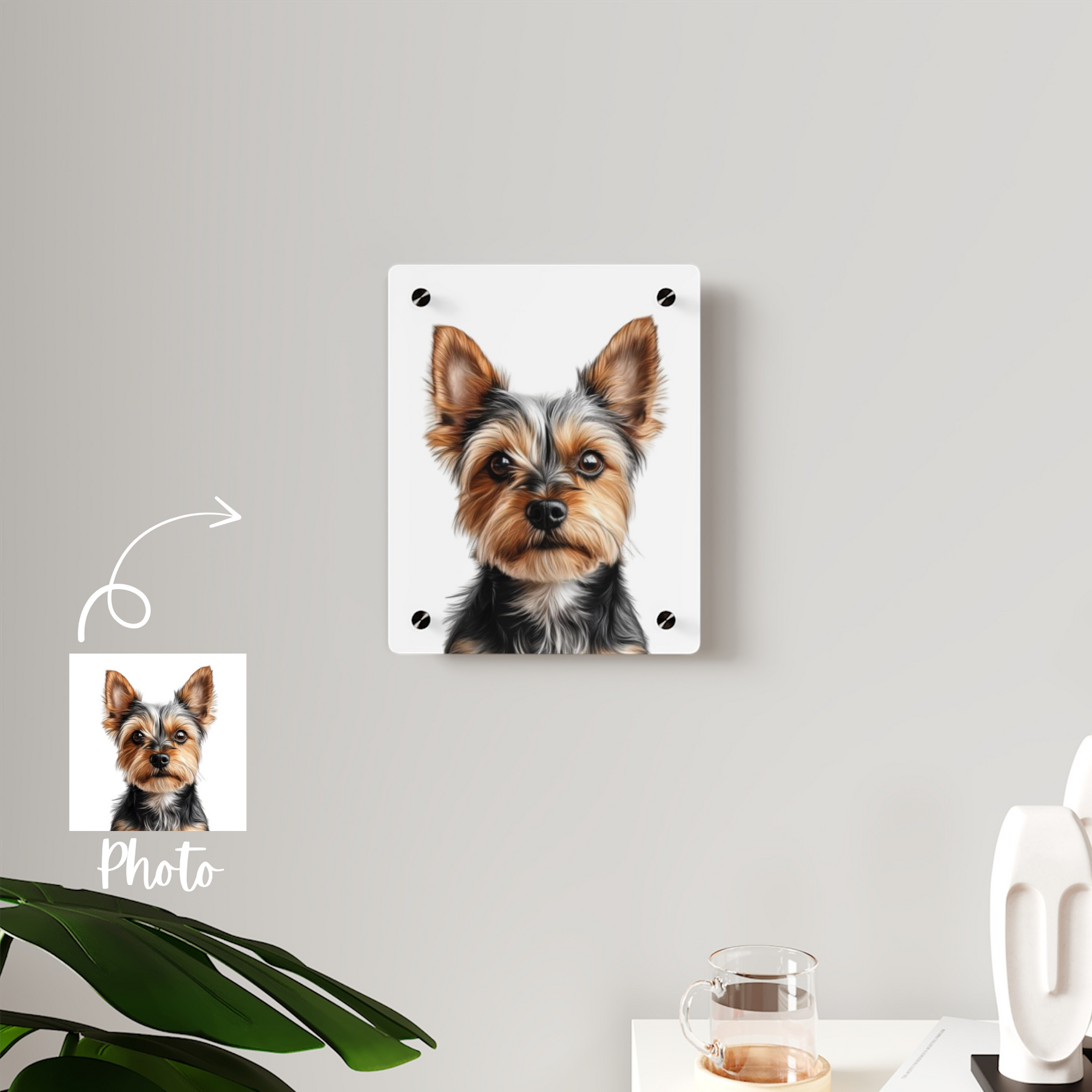 Upload a clear photo of your pet, dog, or loved one with your order, and our design team will create a beautiful acrylic print.