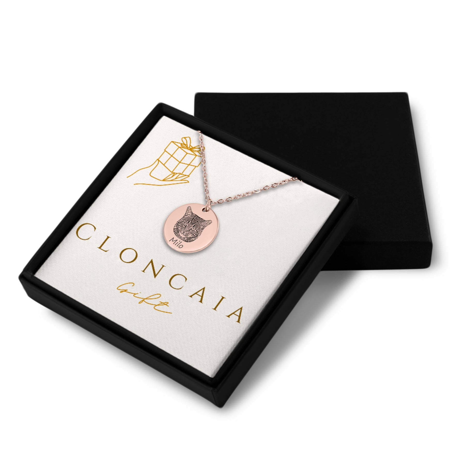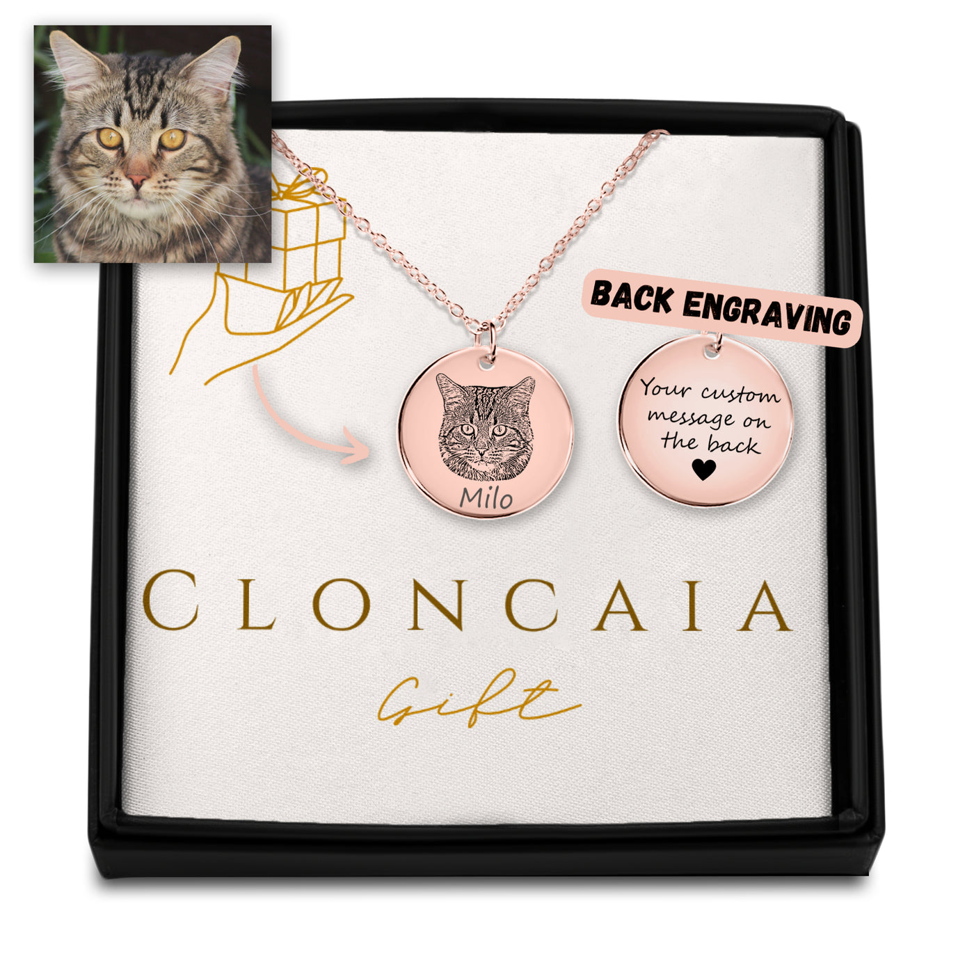 Personalized gift, made-to-order - Customer simply uploads the photo of the pet they want engraved to the necklace & an optional message