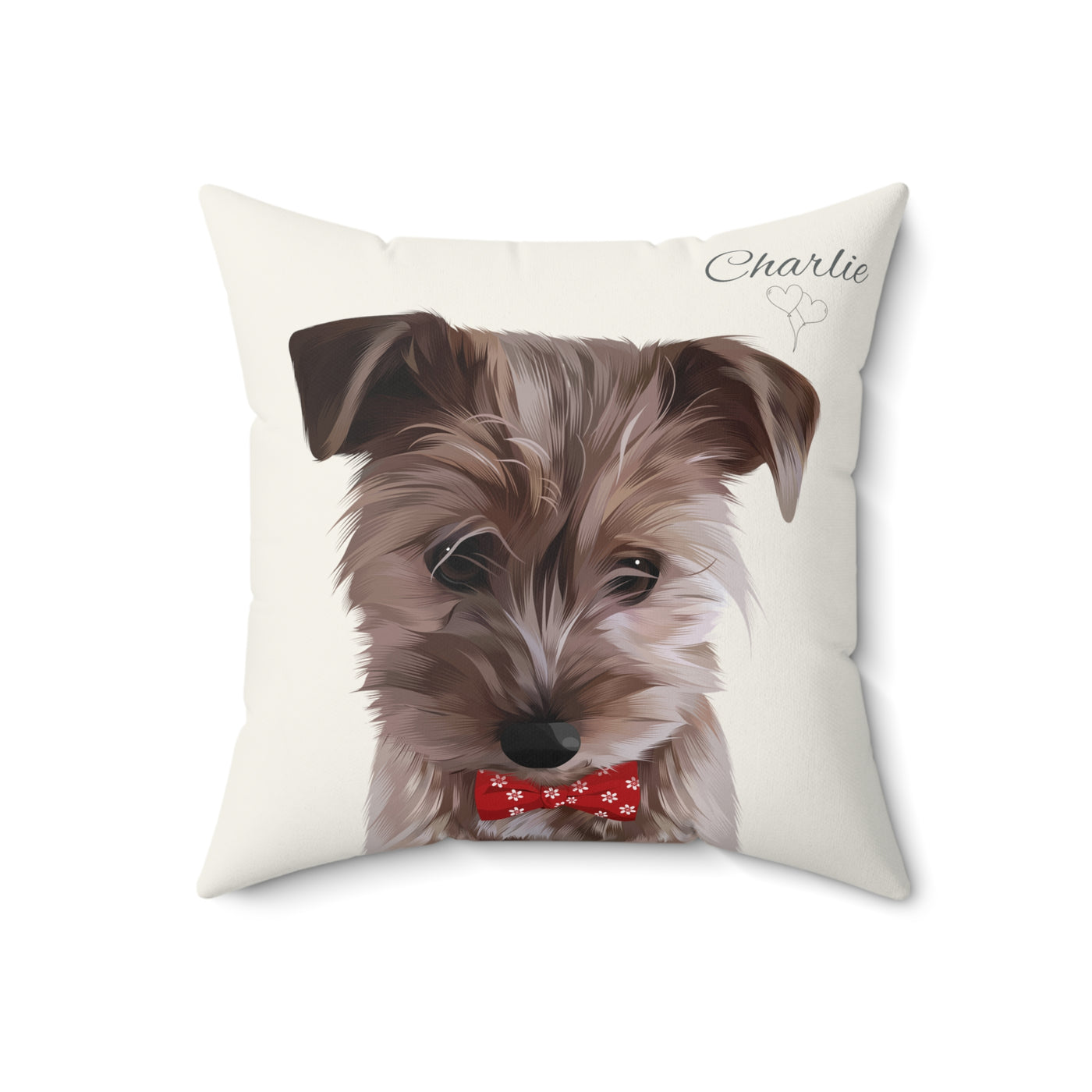 This is a wonderful custom dog pillow where we transform a pet photo into a professionally drawn pet which is imported onto the pillow.