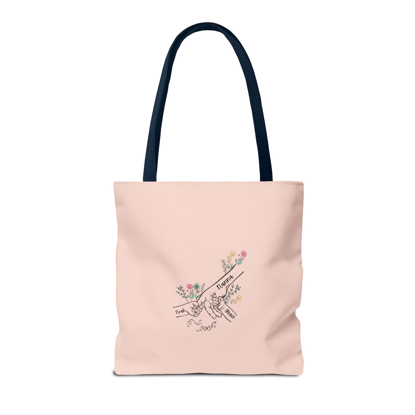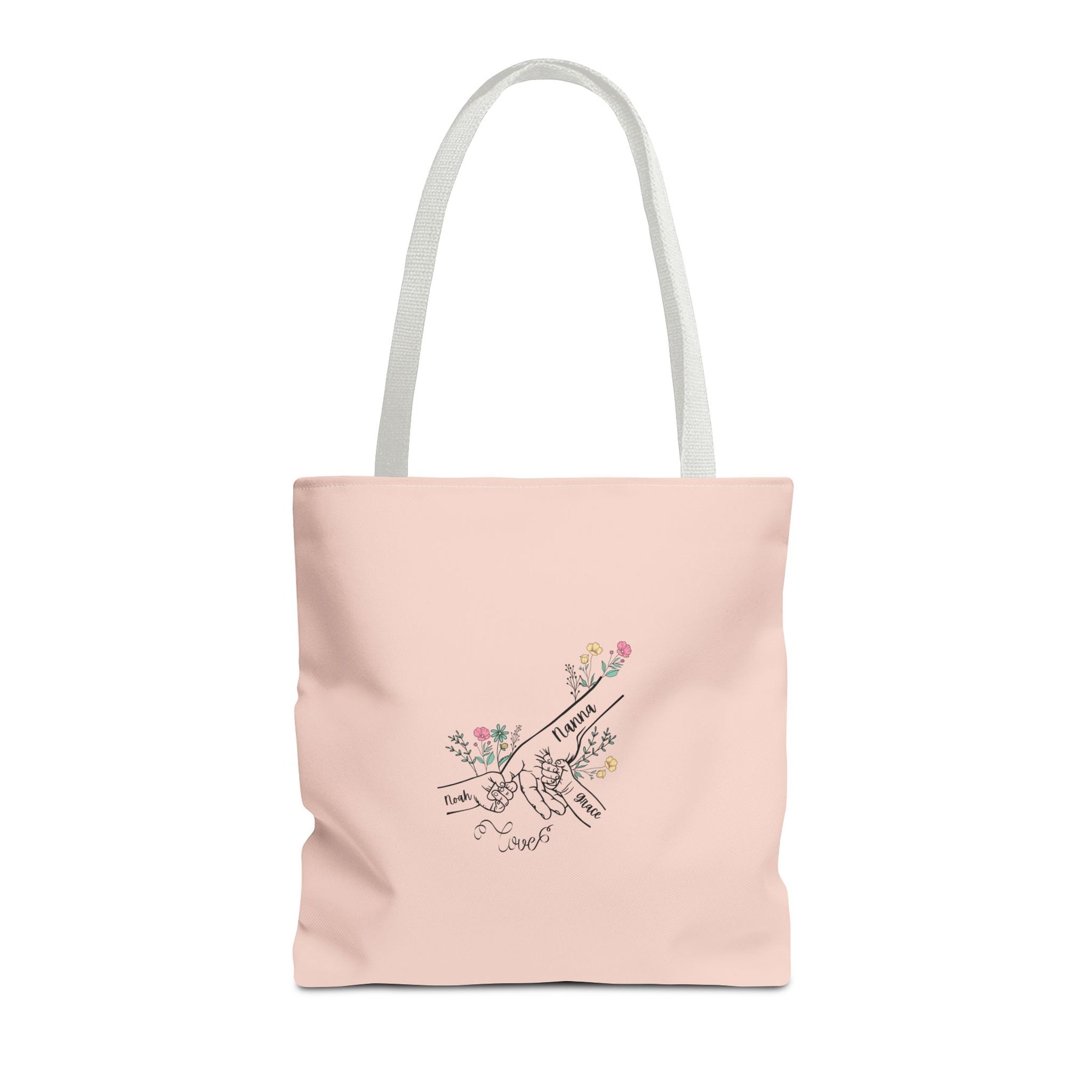 - Please upload up to 3 kids names or grandkids names you want printed to the tote bag, and our design team will print to the tote bag in an order.